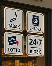Eine auffällige Schaufensterwerbung sorgt dafür, dass Passanten Ihre Angebote und Öffnungszeiten sofort erkennen. Leuchtwerbung und LED-Schilder machen Ihren Kiosk auch abends oder in dunklen Gassen sichtbar. Ergänzend dazu bieten Werbeschilder und Aufsteller eine perfekte Möglichkeit, um Sonderaktionen oder Tagesangebote direkt an die Kunden zu bringen.