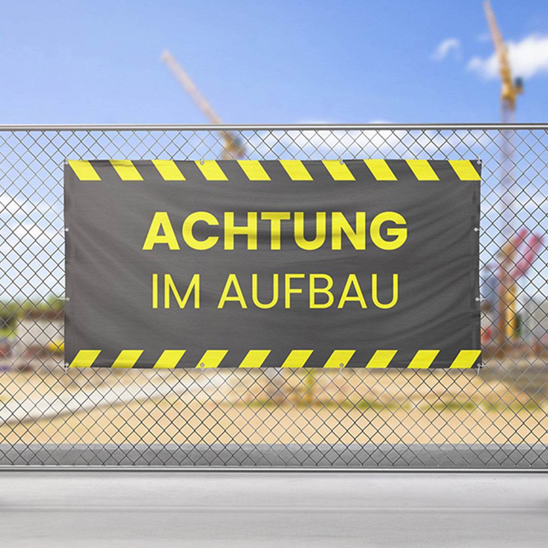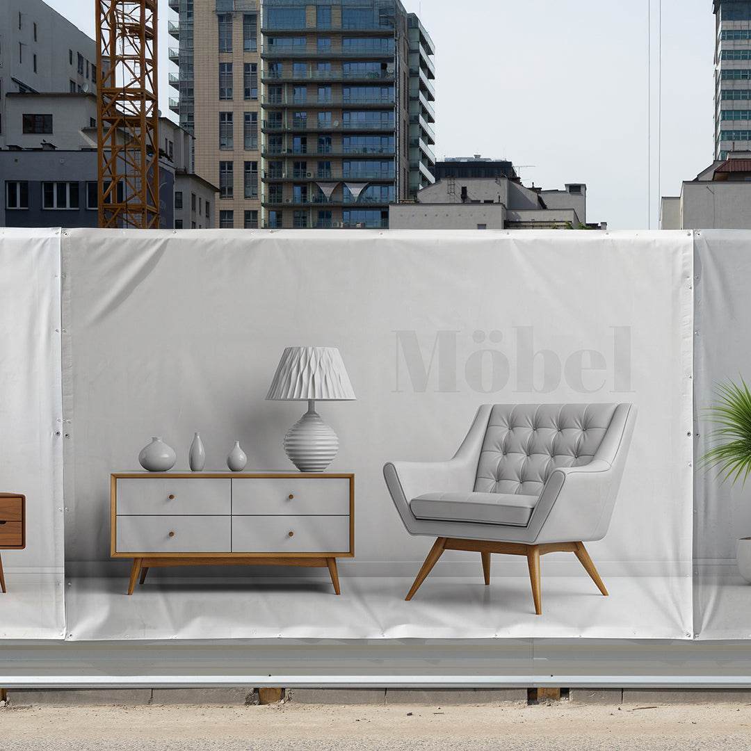 Unsere Bauzaunbanner bestehen aus wetterfestem PVC für maximale Stabilität oder luftdurchlässigem Mesh-Gewebe, das besonders für windige Standorte geeignet ist.
