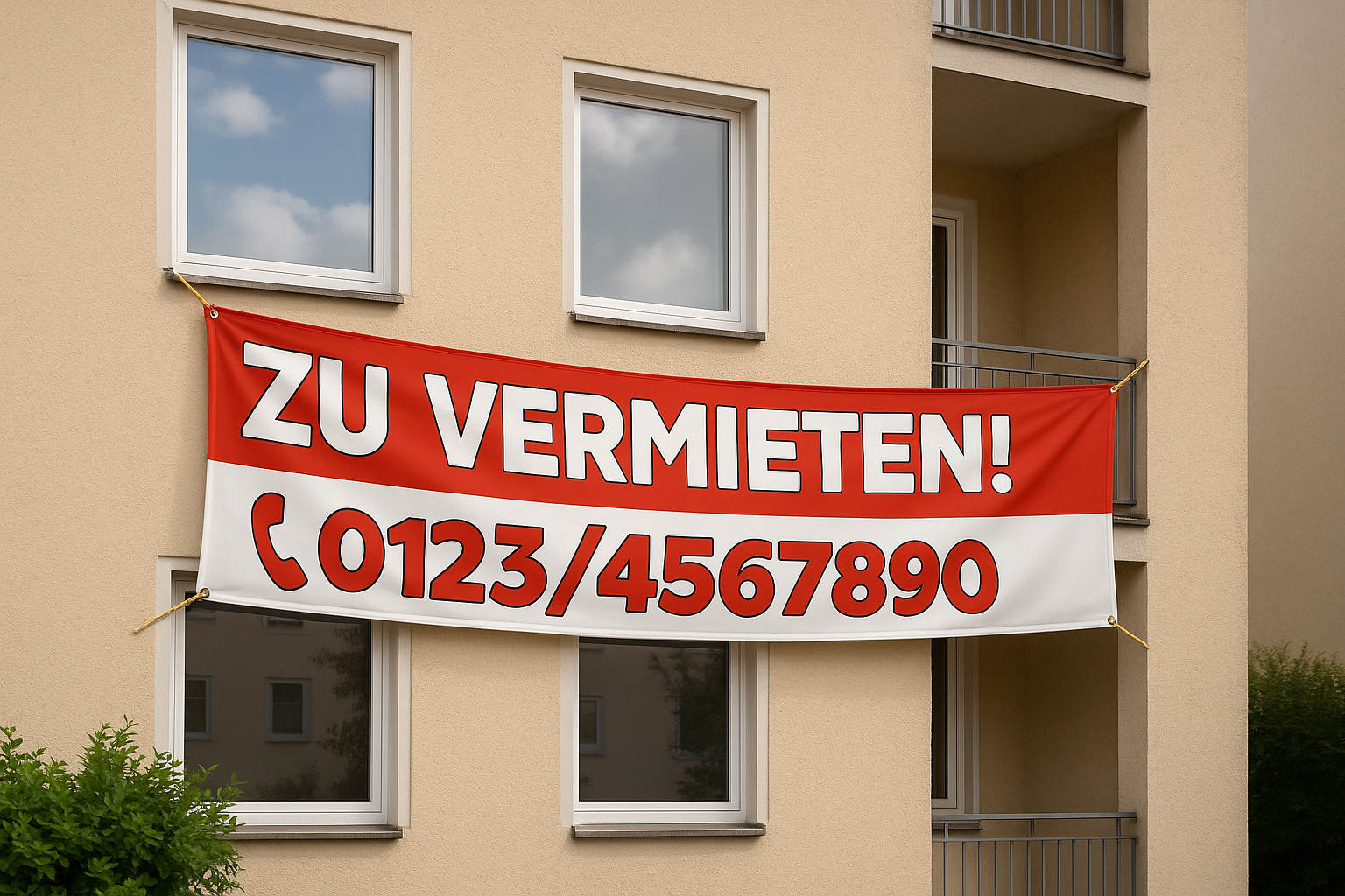 Ein Mietbanner mit Telefonnummer fällt sofort auf, weil die kräftigen Farben und die große Schrift schnell ins Auge springen. Viele Interessenten reagieren direkt, sobald die Nummer sichtbar ist. Deshalb eignet sich ein Banner besonders gut, wenn Wohnungen, Häuser oder Gewerbeflächen schnell vermittelt werden sollen.